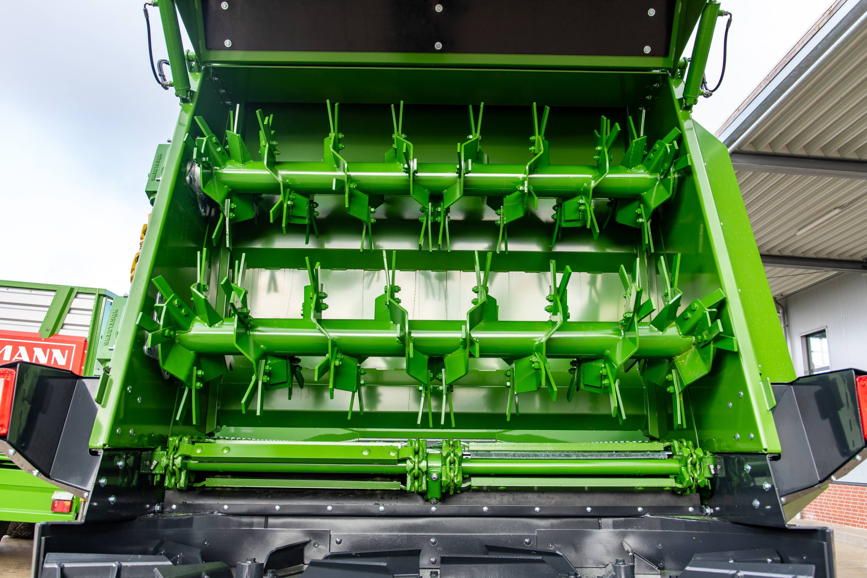 De spatborden zijn steiler dan bij de huidige modellen, krijgen eveneens een KTL- en poedercoating en zijn daardoor heel glad. De spatborden voorkomen zo betrouwbaar dat grotere stukken materiaal gaan vastkleven.